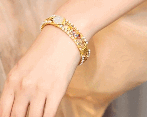 在雕刻过程中,孟庆国注重细节,每一个线条、每一个纹理都经过精心打磨。此外,他还巧妙地运用了镶嵌工艺,将金、银、钻石等珍贵材料镶嵌在翡翠上,使得手镯更加璀璨夺目。