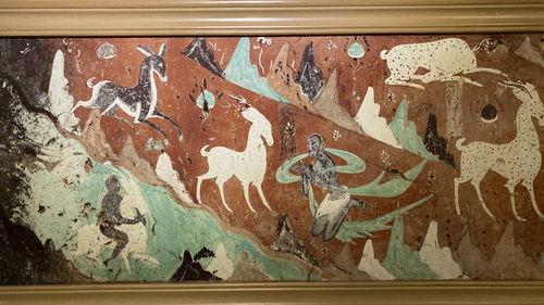 1. 壁画:敦煌莫高窟中的壁画是九色鹿素材绘画的代表。这些壁画色彩鲜艳,线条流畅,展现了九色鹿的优雅与神秘。例如,莫高窟第257窟的《鹿王本生》壁画,描绘了九色鹿救国王的场景,画面生动,令人叹为观止。