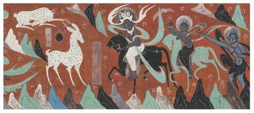 在敦煌研究院内,有一处专门展示九色鹿遗迹的地方。这里陈列着各种与九色鹿相关的文物,如壁画、雕塑、陶器等。其中,最引人注目的是一幅名为《九色鹿本生》的壁画,这幅壁画描绘了九色鹿救商人的故事,画面生动,色彩鲜艳,令人叹为观止。